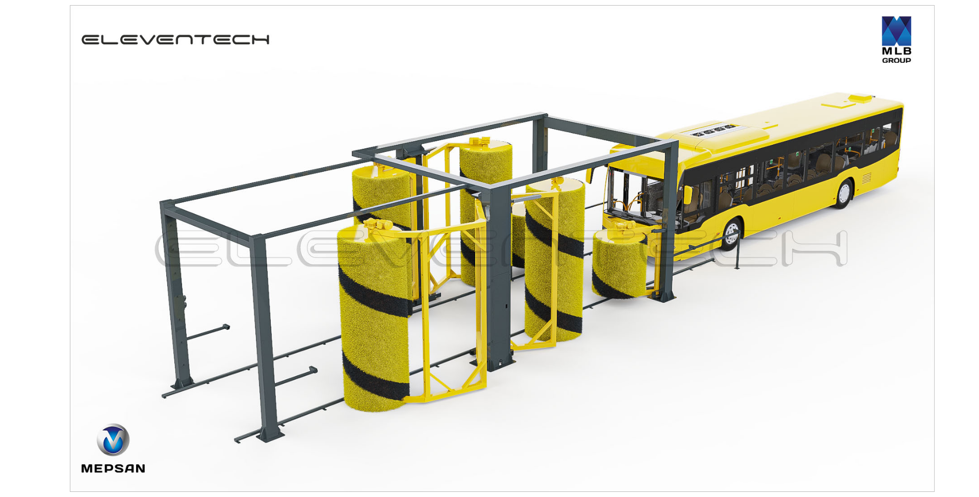 Eleventech Bus Line sistemi, özel bir proje kapsamında 6 farklı garaja kurulmuş olup, toplu taşıma ağında her gün yaklaşık 3.000 otobüsün temizliği bu sistemler tarafından sağlanmaktadır.